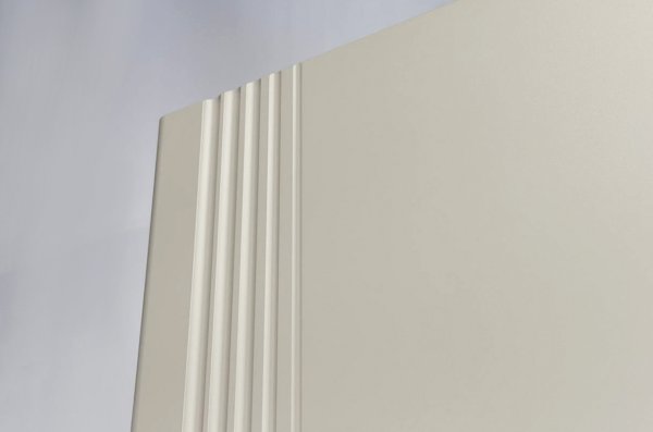 Особое внимание стоит уделить фрезеровке фасадов, которая придаёт шкафу изысканный и неповторимый вид. Длинные пластиковые ручки гармонично дополняют общий стиль шкафа.
