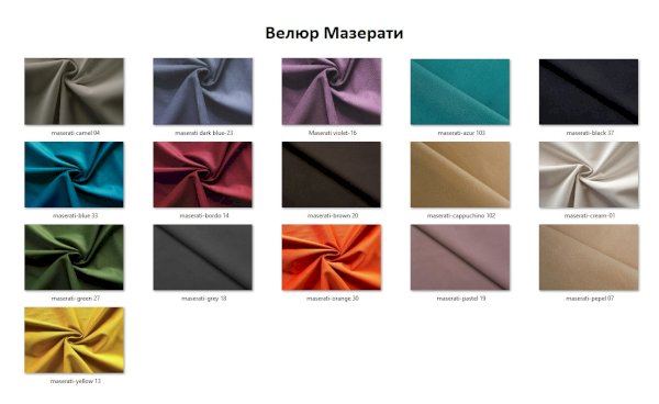 | Цвет | БЕЖЕВЫЙ / БЕЛЫЙ / ГОЛУБОЙ / ЖЕЛТЫЙ / ЗЕЛЕНЫЙ / КОРИЧНЕВЫЙ / КРАСНЫЙ / ОРАНЖЕВЫЙ / РОЗОВЫЙ / САЛАТОВЫЙ / СЕРЫЙ / СИНИЙ / СИРЕНЕВЫЙ / ЧЕРНЫЙ / КОФЕ |