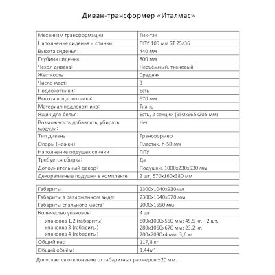 Диван-трансформер Италмас (Аквилон) – товар доступен к покупке в интернет-магазине staro-oskolskiy-dommebeli.ru. Цена – 73 394 руб. без учета доставки. Стоимость дополнительных услуг и сроки получения мебели уточняйте у менеджера. Возможен безналичный расчет, оплата по карте на сайте.