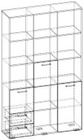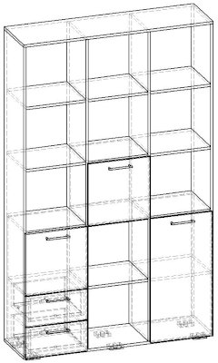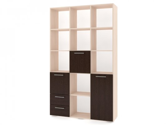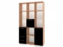 Применение задней стенки из ЛДСП (в ячейках с ящиками и фасадами) позволяет использовать данный стеллаж для зонирования пространства (чтобы предотвратить опрокидывание, необходимо обеспечить крепление стеллажа к стене).